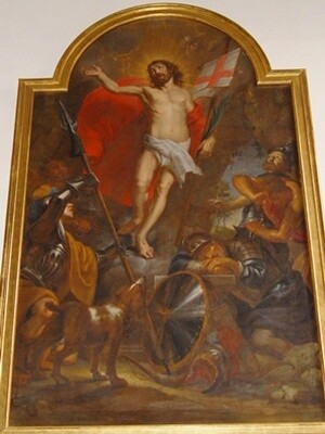 Warum ein Hund mit etwas im Maul in dem Gemälde am Abendmahlstisch zu sehen ist, bleibt wohl das Geheimnis des fränkischen Malers Georg Anton Urlaub. In der Originalskizze allerdings ist zwar der Hund eingezeichnet, nicht aber eine Katze, die hinter ihm in drohender Gebärde zu sehen ist. Tiere, meist Hund oder Katze, sind übrigens in Malereien immer wieder zu finden. So unter anderem in der Stadtpfarrkirche Bad Königshofen. Dort findet man Altarbilder des flämischen Malers Oswald Onghers. Eines davon zeigt die Auferstehung Christi. Neben den Aposteln ist ein Hund zu sehen, der die ganze Szene mitverfolgt.
